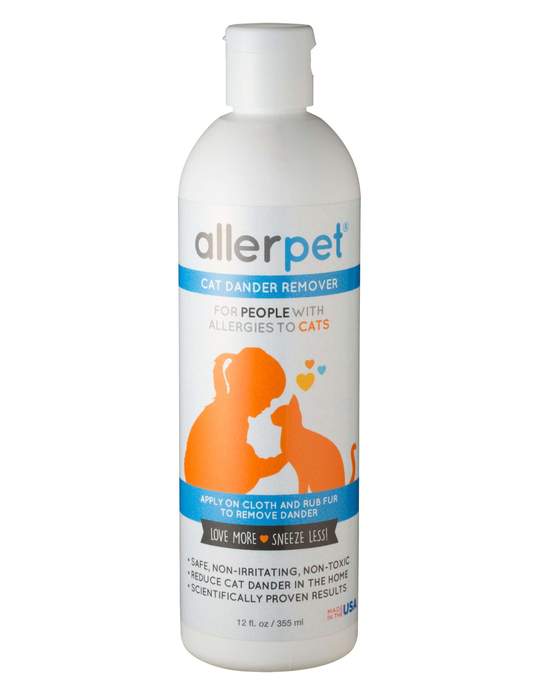 貓咪會產生 Fel d1,這是一種強效的過敏原,會影響許多人。Allerpet 貓毛去過敏劑幫助減少您家中的過敏原,通過清潔貓咪的毛髮。