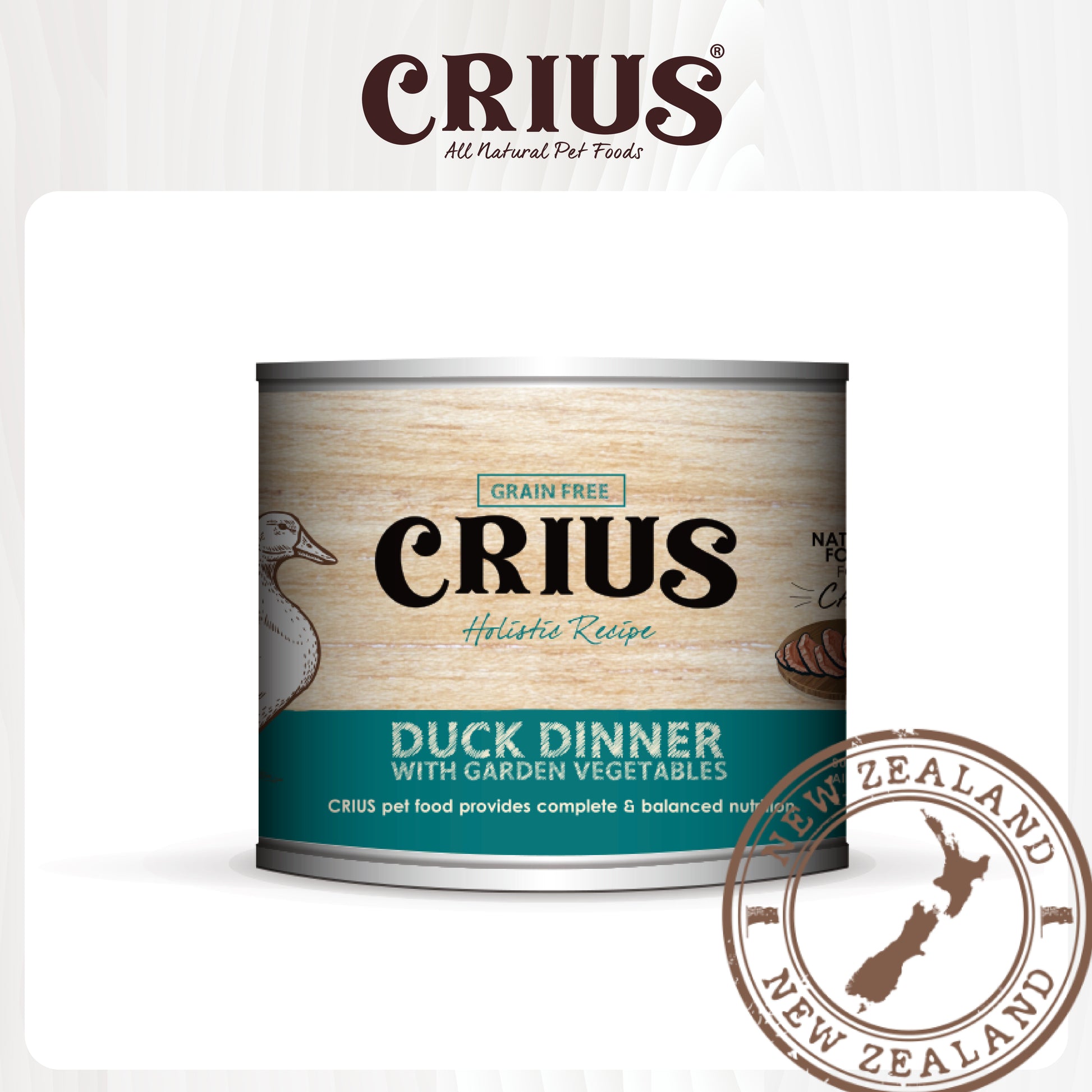 CRIUS 克瑞斯 鴨肉罐(貓用)是天然、無穀物的濕糧,含有 90% 的天然鴨肉,以來自紐西蘭、100%自由放養符合道德來源的鴨製造,能滿足貓貓所需的富含蛋白質、低碳水化合物及低磷的飲食。