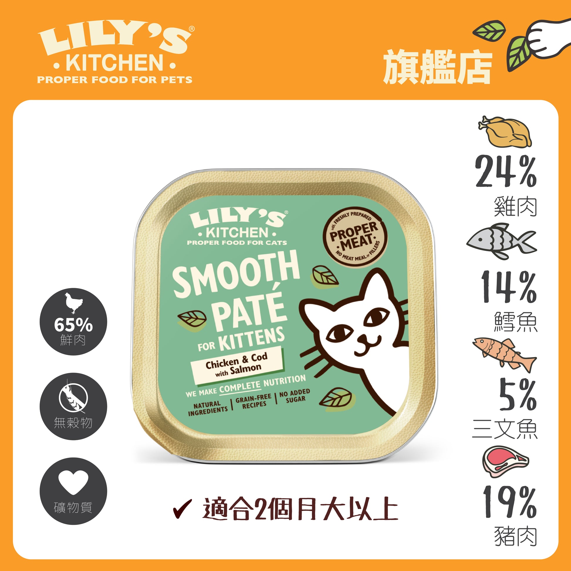 Lily's Kitchen SMOOTH香滑肉醬幼貓罐系列,由愛貓的專業人士為幼貓調製。柔軟嫩滑的肉醬質地,無穀物、無添加糖、肉粉或動物衍生物及其他不必要和有害物質,讓幼貓獲得成長所需的均衡營養,擁有健康愉快的生活。