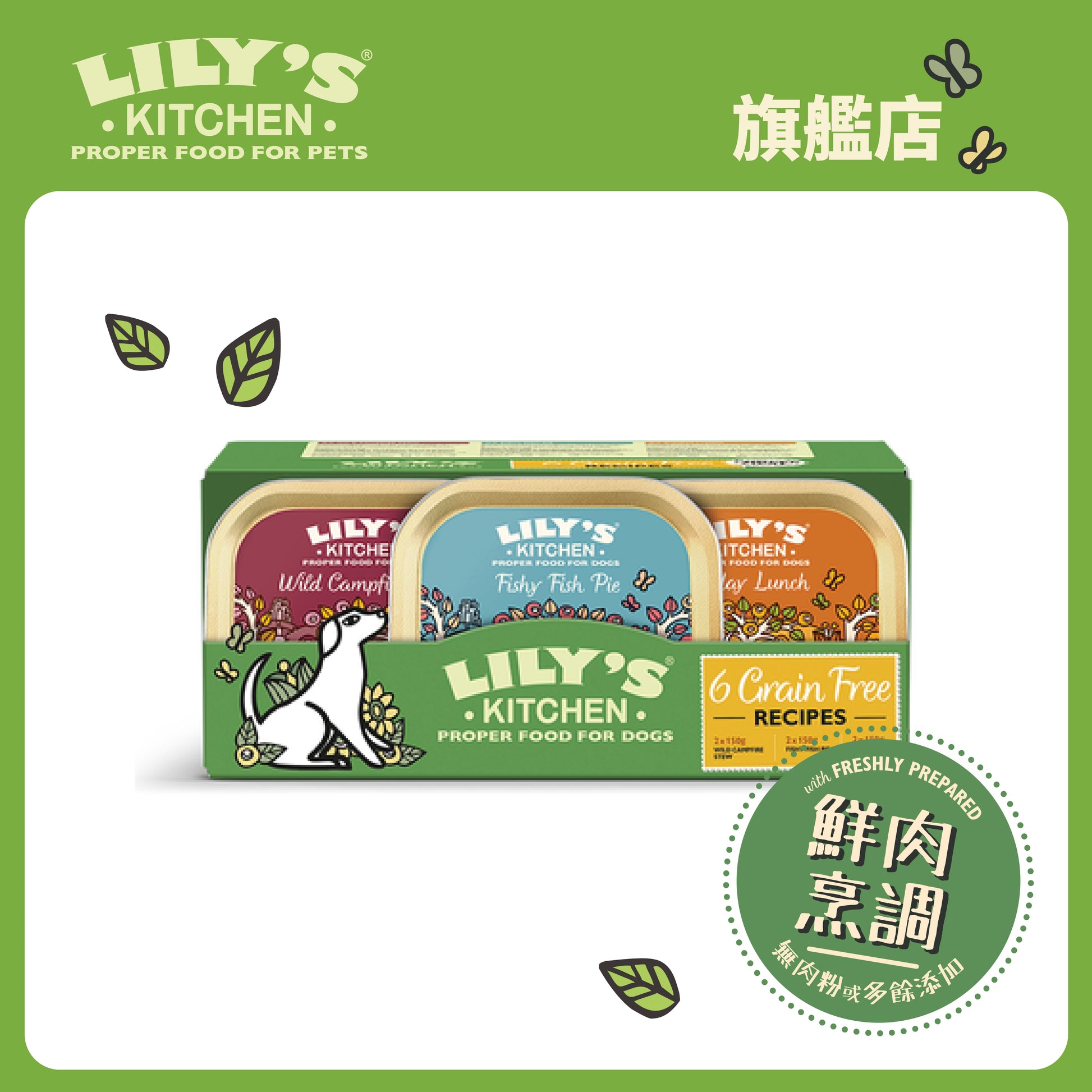 Lily's Kitchen 無穀物口味餐盒,包含雞肉蔬菜餐、野味燉鍋、鮮魚肉批3款口味,每款口味各兩罐,還狗狗攝取不同的優質蛋白;無穀物、無添加糖、肉粉或動物衍生物及其他不必要和有害物質,讓狗狗享用到天然健康的膳食。
