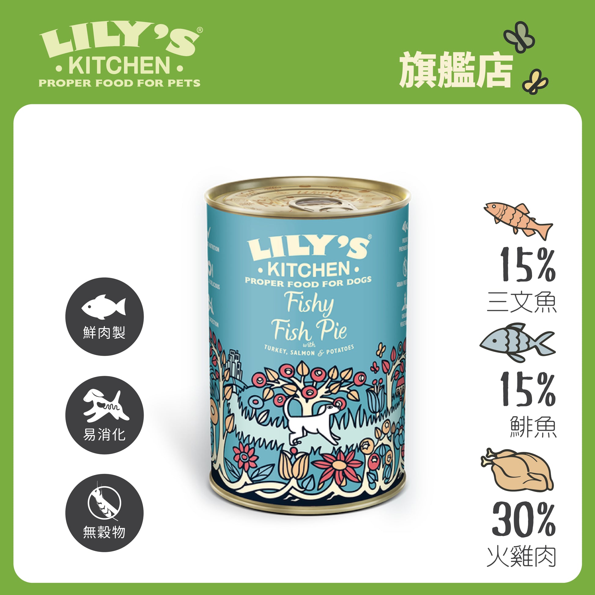 Lily's Kitchen 犬用主食罐系列,採用新鮮火雞肉、魚肉和農產品製成,包含狗狗真正健康飲食所需的所有必需維生素和礦物質,無穀物、無添加糖、肉粉或動物衍生物及其他不必要和有害物質,讓狗狗享用到天然健康的膳食。