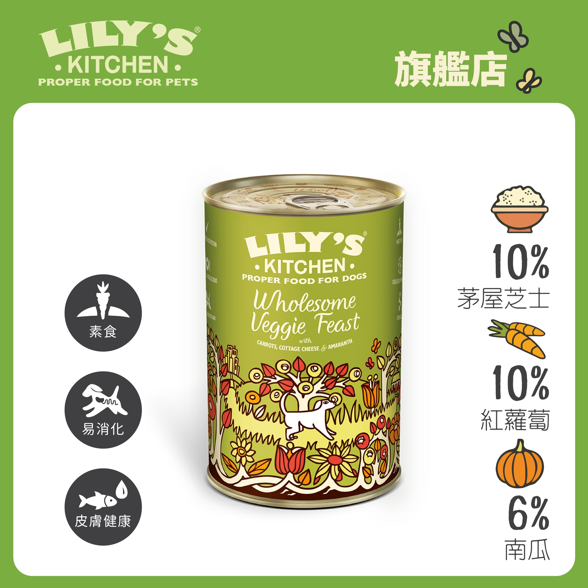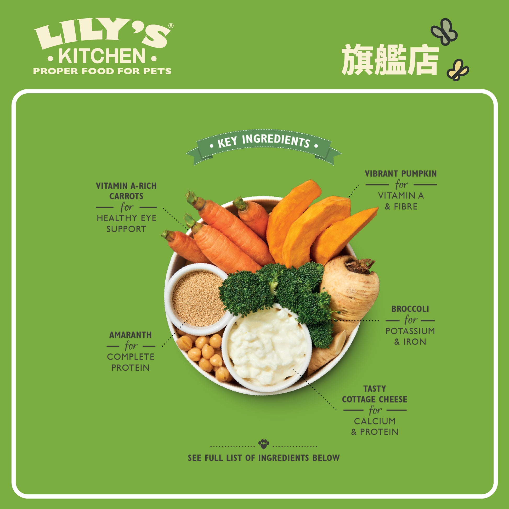 Lily's Kitchen 素食犬用罐,提供美味的素食蛋白質和精選蔬菜,所需的維生素和礦物質,容易消化,無添加糖及其他不必要和有害物質,讓狗狗補充需要的蔬菜營養。