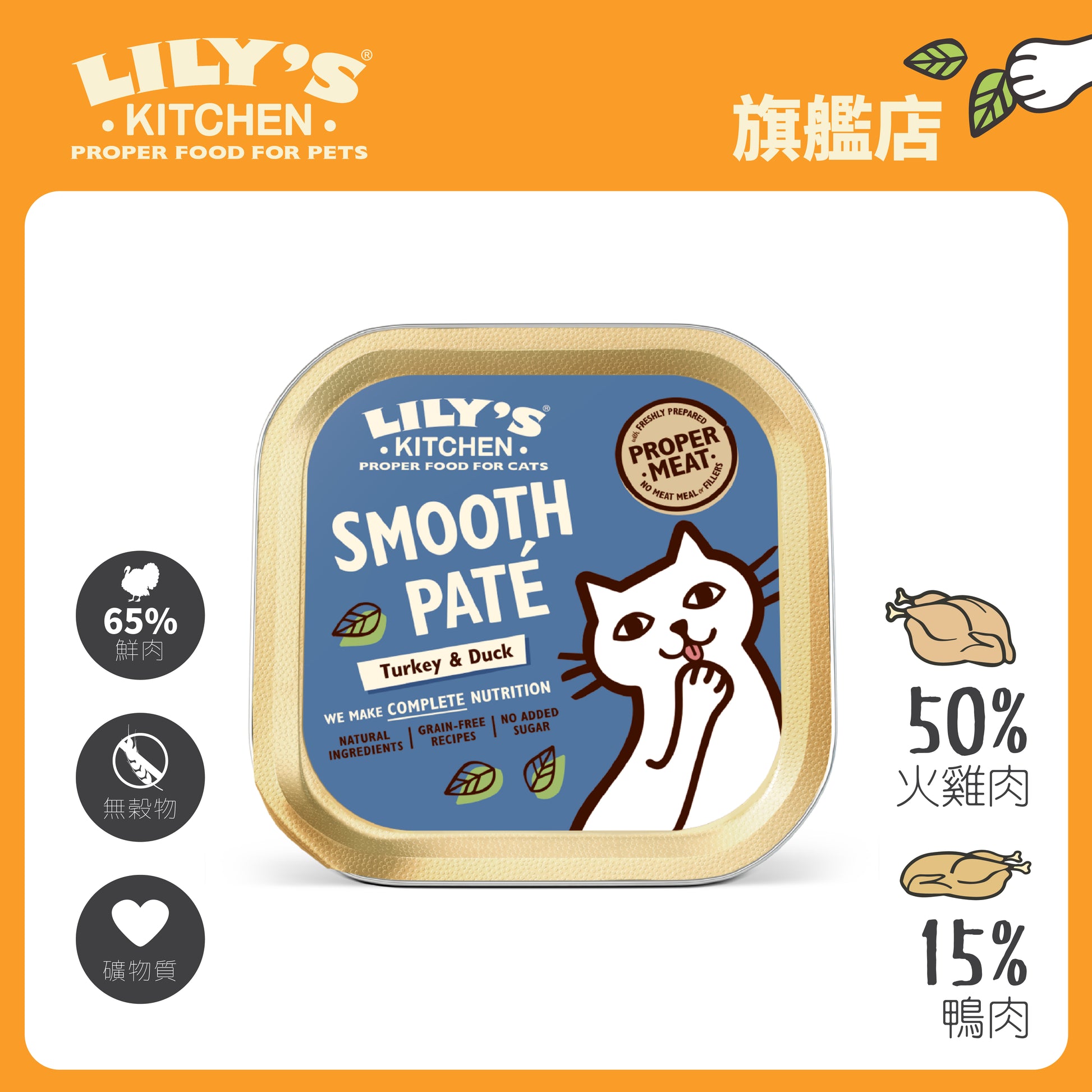 Lily's Kitchen SMOOTH香滑肉醬貓罐系列,柔軟嫩滑的肉醬質地,無穀物、無添加糖、肉粉或動物衍生物及其他不必要和有害物質,提供貓咪無負擔的膳食。