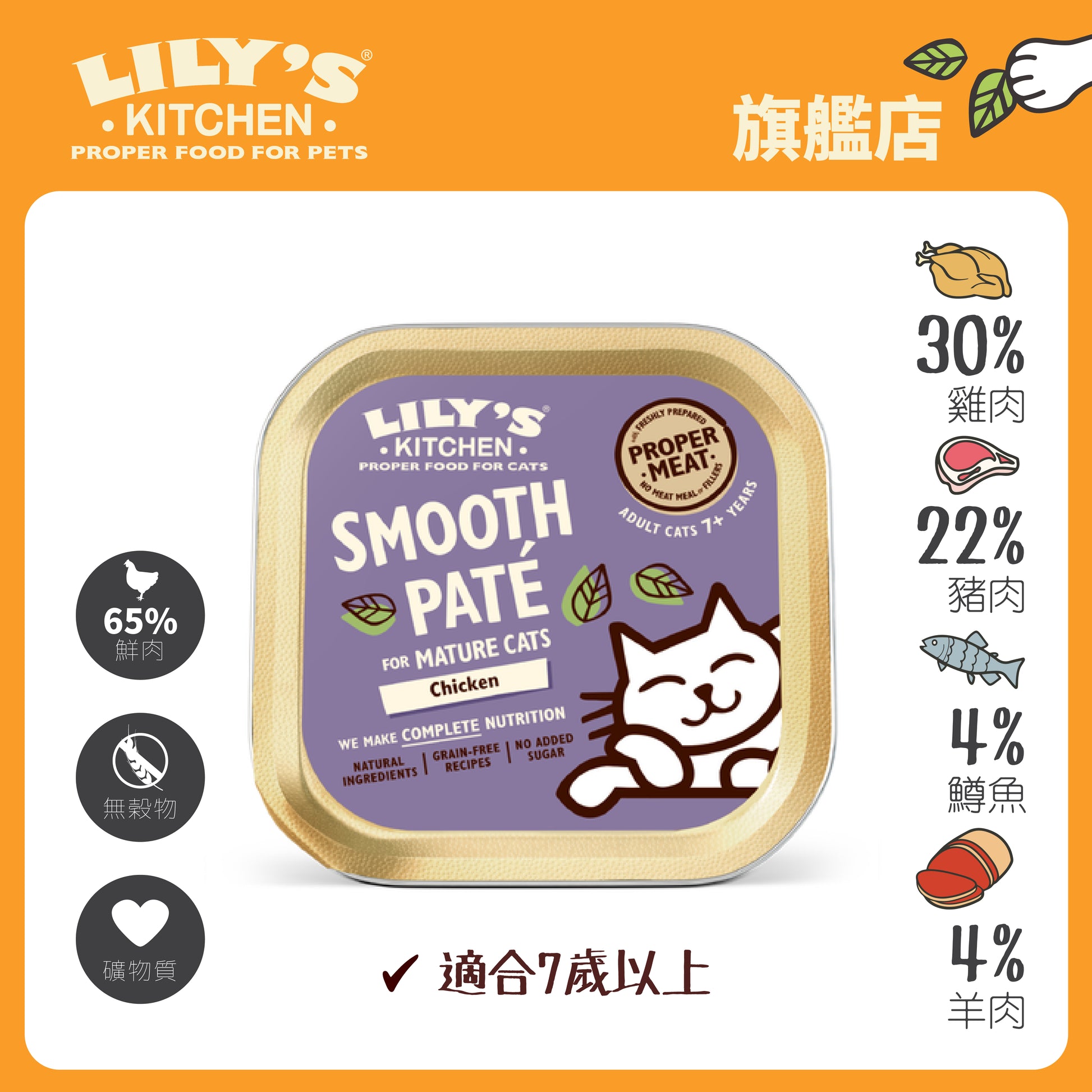 Lily's Kitchen SMOOTH香滑肉醬老貓罐系列,由愛貓的專業人士為老貓調製。柔軟嫩滑的肉醬質地,無穀物、無添加糖、肉粉或動物衍生物及其他不必要和有害物質,讓高齡貓獲得所需的均衡營養,擁有健康愉快的生活。
