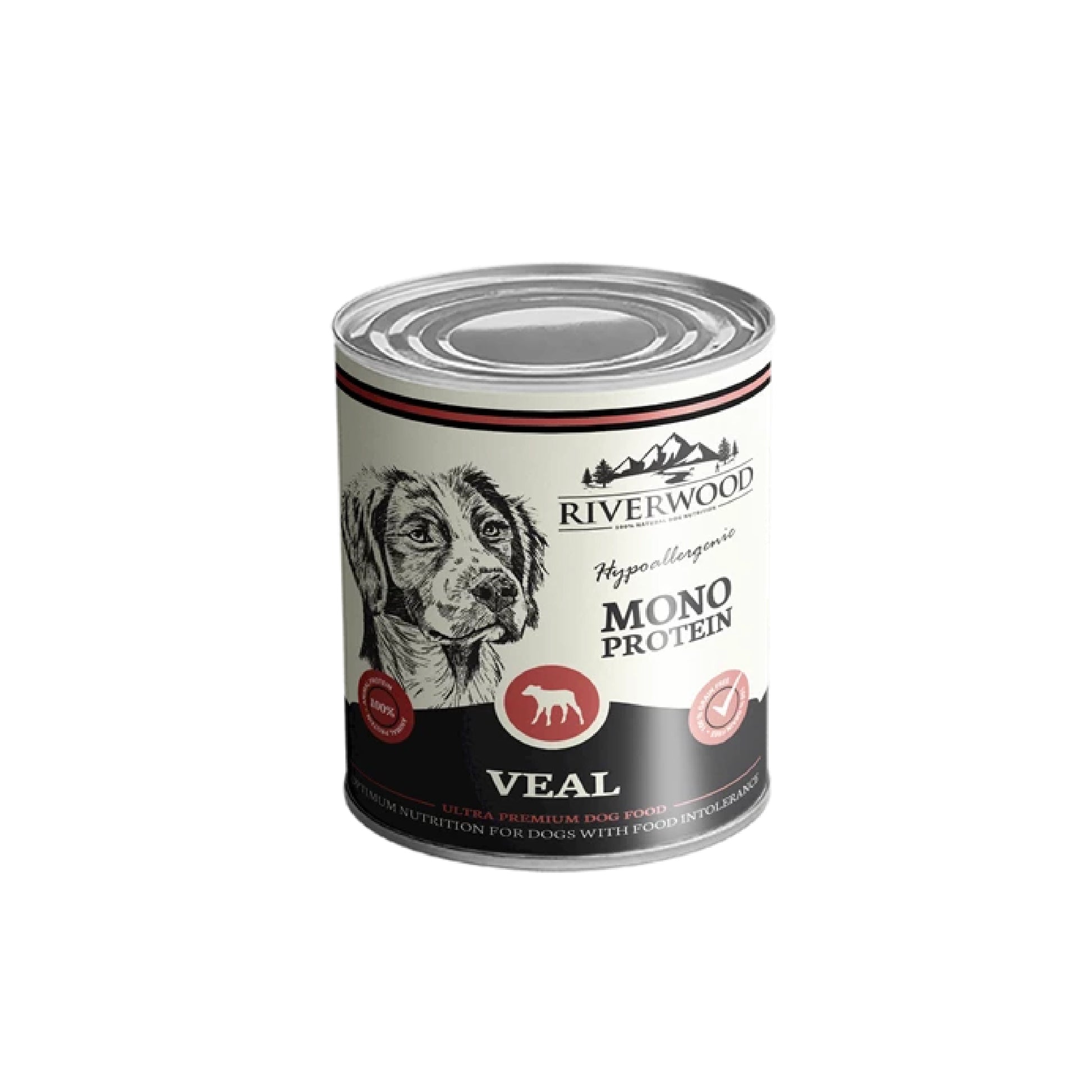 Riverwood 濕糧由單一蛋白質來源製成,特別適合食物不耐受的成犬。配方以 70% 小牛肉為原料,不含麩質或穀物,當然也不含味精、色素或香料。