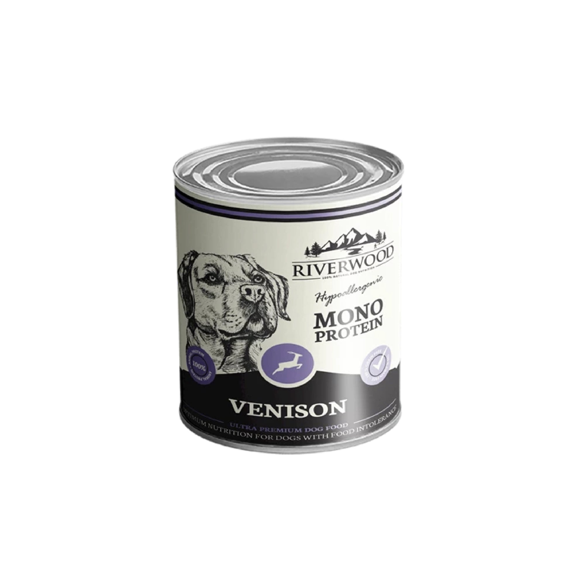 Riverwood 濕糧由單一蛋白質來源製成,特別適合食物不耐受的成犬。配方以 70% 鹿肉為原料,不含麩質或穀物,當然也不含味精、色素或香料。